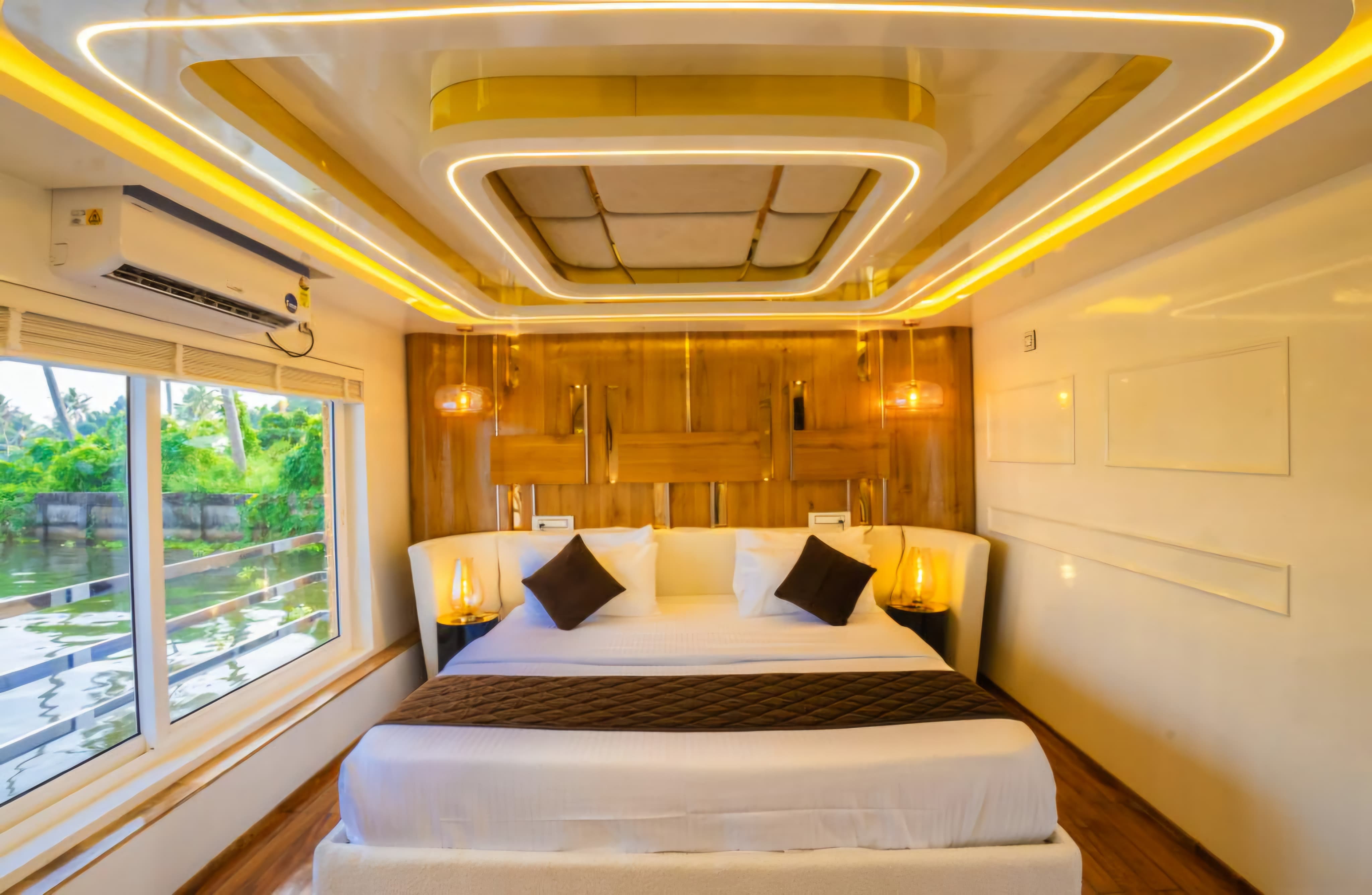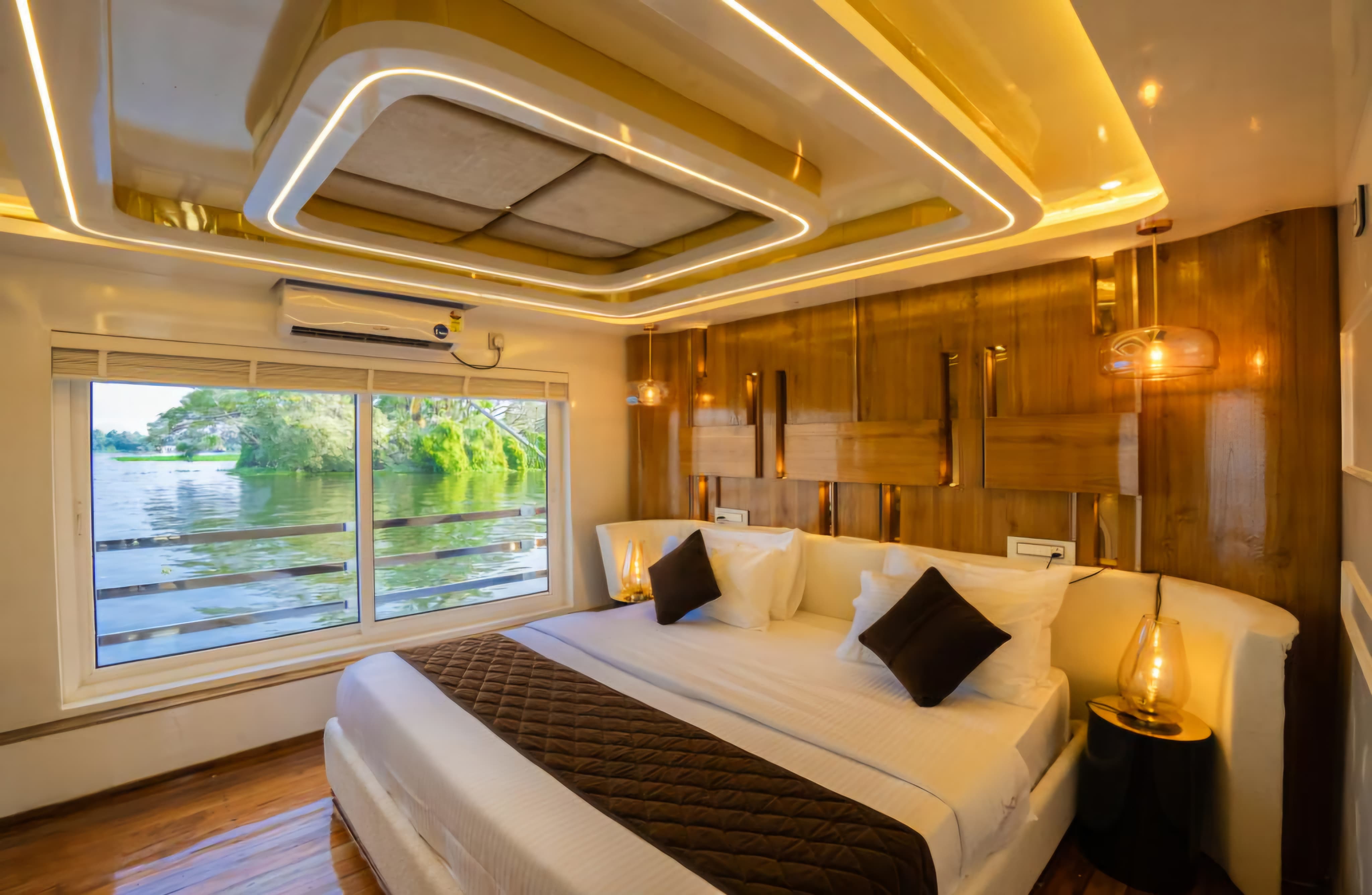 Experience ultimate luxury on the serene backwaters of Alleppey with this four-bedroom houseboat. Designed for comfort and elegance, the houseboat features spacious rooms with modern amenities, stunning views, and a private sundeck. Ideal for family getaways or group retreats, it offers top-notch services, including personalized dining and serene cruising along the picturesque backwaters. Perfect for those seeking a unique, peaceful, and luxurious escape in Kerala’s beautiful waterways. Book your unforgettable experience now!