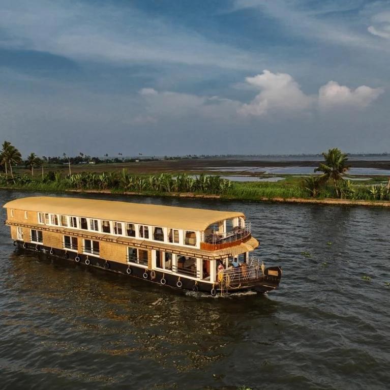 Experience luxury on the water with this stunning six-bedroom houseboat in Alleppey. Perfectly designed for comfort and elegance, this houseboat offers spacious rooms, modern amenities, and breathtaking views of Kerala's backwaters. Ideal for family getaways or group retreats, enjoy cozy interiors, private balconies, and world-class service. Explore the scenic beauty of Alleppey while indulging in an unforgettable floating vacation. Book your stay now for an unparalleled houseboat experience in Kerala.